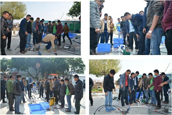 灌溉部徐焕彬部长对灌溉设备的各个结构配件的工作原理、应用范围和基本的参数等做详细的讲解。理论培训结束后,全体业务员以小组为单位来到水肥一体化技术展示区进行实地操作练习。公司领导希望业务员在掌握液体肥料的知识之余,也了解并学会安装灌溉施肥设备,从而促进液体肥料的推广。