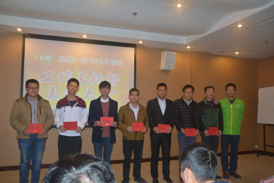 会末,胡克纬总经理宣读了对2015年度下半年出类拔萃事件责任人的表彰决定,高度评价了他们做出的贡献,对他们一如既往的为公司创造价值、不断创新表示感谢。同时胡总鼓励全体员工再接再厉,努力在2016年度再创佳绩。最后,相关领导为各部门员工颁发年终奖并予以新年祝福!