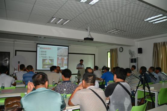 参观结束后,嘉宾们前往乡喜培训室参加本次招商培训会。首先,华南农业大学张承林教授做“国内外液体复混肥料的发展现状”的报告。张教授分享了国外先进的生产模式、销售模式、配送模式等,并就颗粒肥与液体肥进行详细的优劣势对比分析,肯定了液体复混肥将是未来肥料市场的主流肥料。嘉宾们表示张教授的课程深入浅出又不失风趣,让他们受益匪浅。
