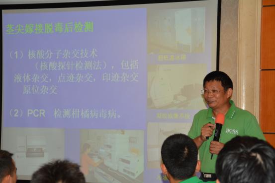 华南农业大学园艺学院陈杰忠教授以风趣幽默的方式讲解了柑橘的健康栽培技术,内容丰富,涵盖了柑橘树如何健康种植栽培、建园规划设计、土水肥管理、促花保果、病害防治等多方面的知识。陈教授特别强调了合理的水肥一体化技术应用,对于减少和抑制柑橘黄龙病、黄化病等病虫害发生,会起到至关重要的作用。