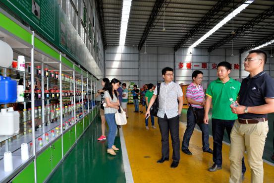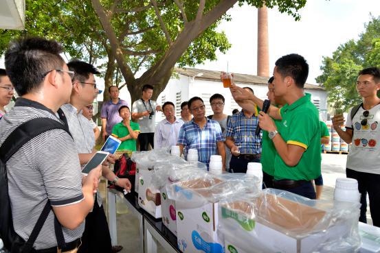 次日,全体与会人员在东莞一翔液体肥料有限公司胡克纬总经理的带领下参观了乡喜液体肥料生产车间、质检中心和水肥一体化技术展示区。东莞一翔作为水肥性肥料代表企业,是华农农业大学教学实践基地、水肥一体化培训基地、液体肥料产业化培训基地,数月来吸引了大批学生和来自不同地区的客户、种植户前来参观考察和学习。