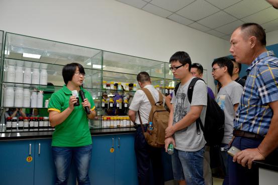 与会人员参观乡喜液体肥质检中心肥料样品留样区并了解相关质量品质追踪系统