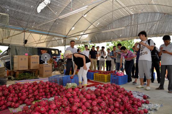 参观结束后,与会人员前往华裕火龙果场基地参观。火龙果场长详细介绍了火龙果品种及其栽培技术。