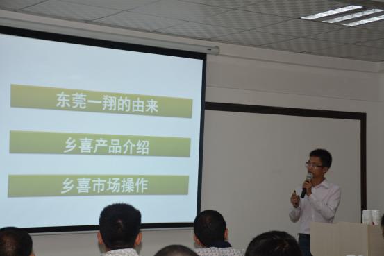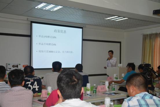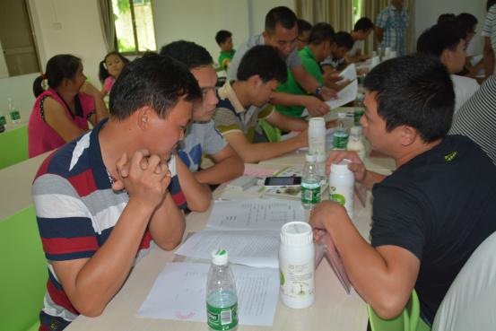 大区经理蓝奕斌则详细介绍了乡喜系列产品,并通过与常规水溶肥、固体肥和复合肥的比较突出了及乡喜液体肥优点和卖点。此外,蓝经理与客户团分享了乡喜液体肥在韶关地区的成功案例,并介绍了乡喜液体肥在瓜菜类、果树等作物的用法用量,以及如何应用施肥器更好地施肥。