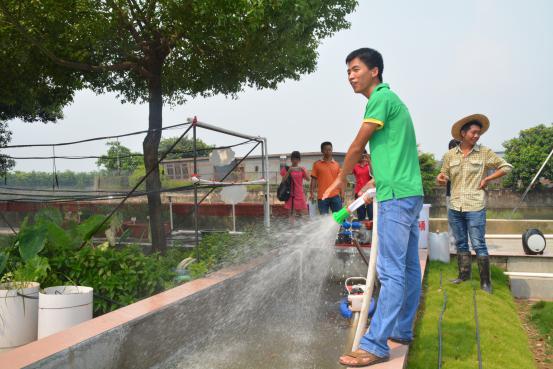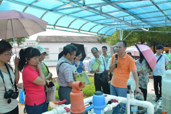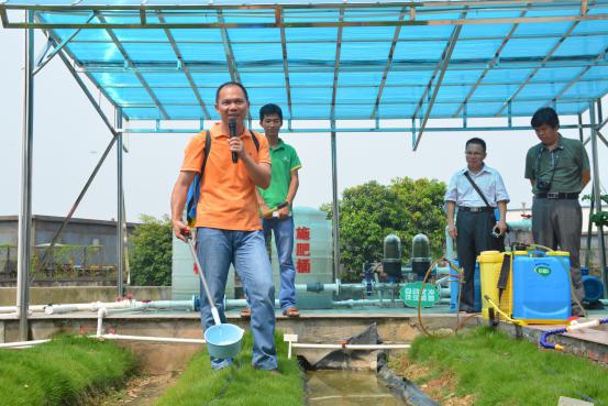 广西土肥站参观团参观了乡喜液体肥的生产分装车间、质检中心和水肥一体化技术展示区。在水肥一体化技术展示区,邓兰生老师详细为参观团讲解了灌溉首部系统的结构和运作原理,并结合参观团在华南农业大学为期一周的土肥知识培训,实地为参观团展示了各种施肥技术和施肥设备。参观结束后,参观团纷纷对乡喜液体肥先进高端的设备仪器、液体肥料的研发、水肥一体化技术应用上的创新表示认可。