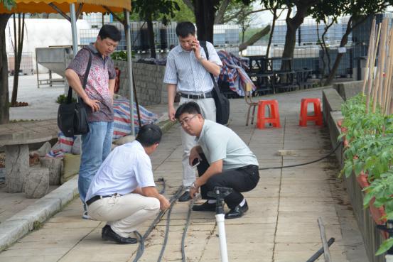 王厂长(图右1)一行参观了解滴灌系统的滴灌管