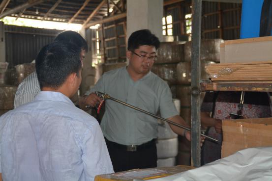 王厂长(图左2)参观从不同地区采样的土壤以及了解测土配方流程