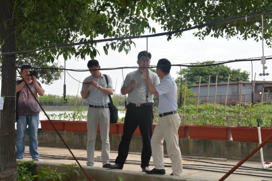 王厂长(图右1)一行表示改进的施肥设备很新鲜实用
