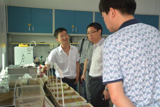 胡克纬总经理(图左1)介绍质检中心的肥料小试验