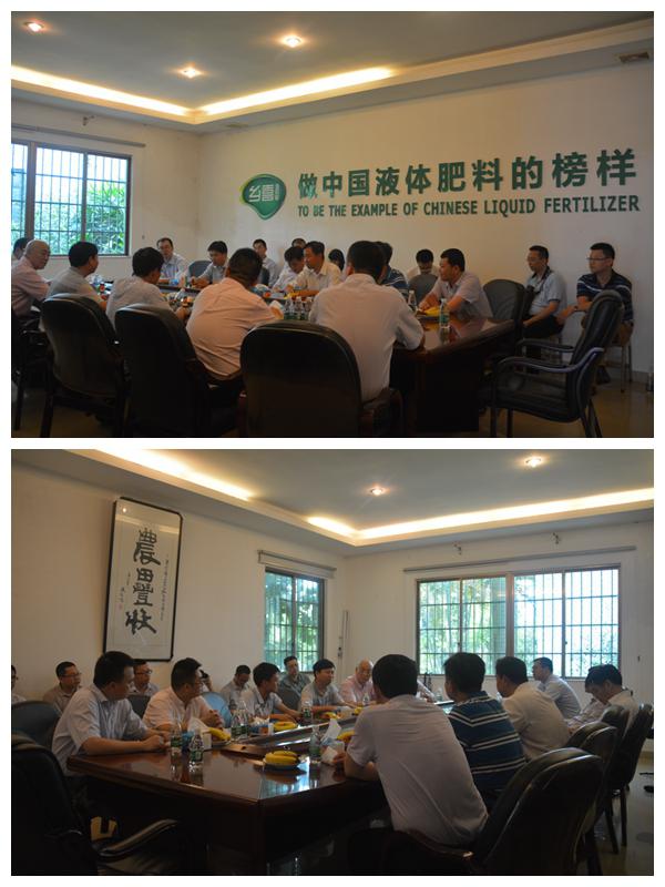 2015年5月27日,中化化肥有限公司考察团到乡喜液体肥参观考察。我司胡克纬总经理、赖忠明副总经理热情接待陪同刘总一行考察。